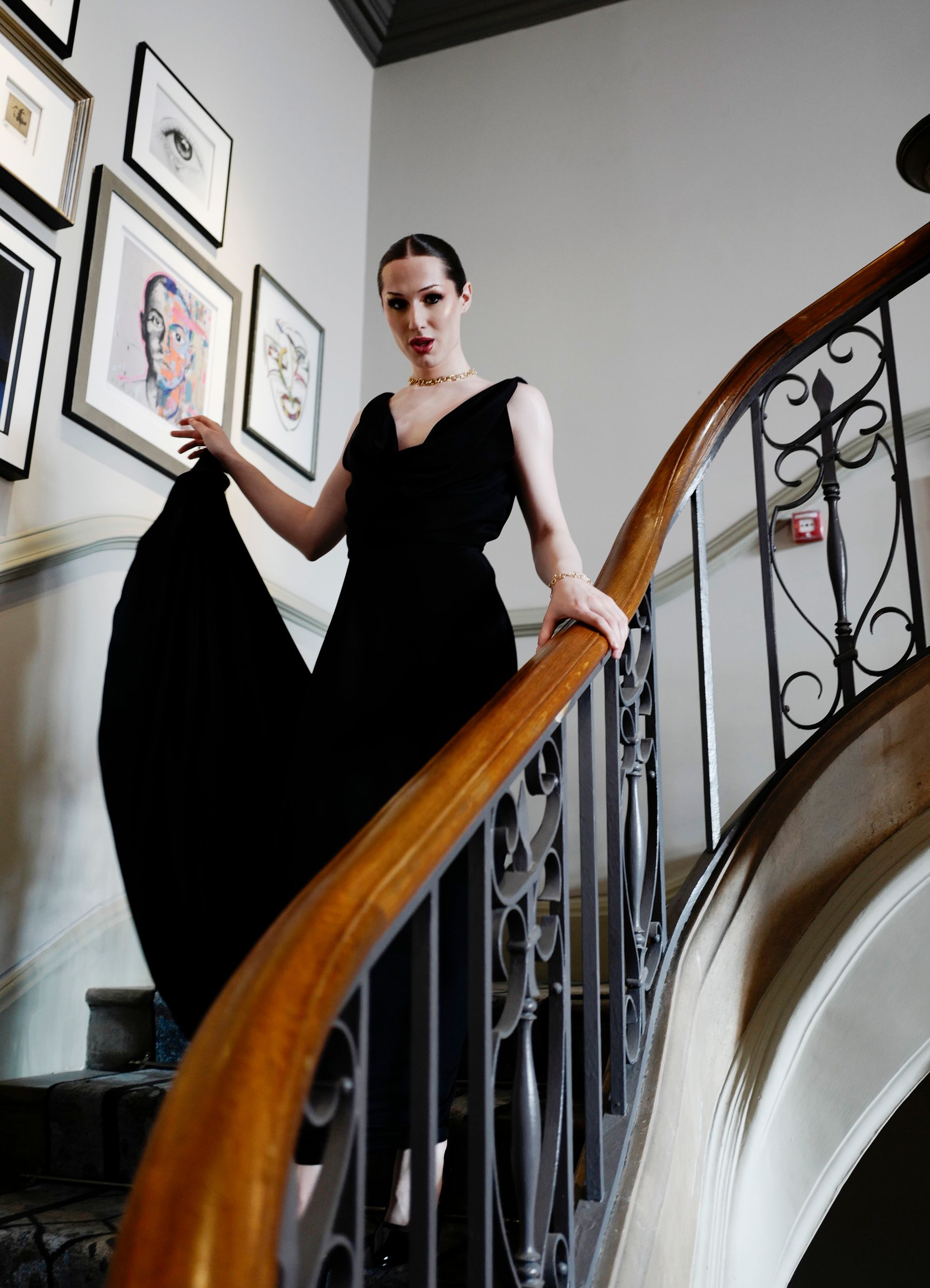 Made from 100% deadstock silk outer and a luxurious 100% silk chiffon lining, this stunning evening gown showcases a flattering scrunch bum detail and an elegant cowl neckline. The bold plunging back and flowing luxury train make it perfect for making a memorable impression on the red carpet or special event. Additionally, an internal ribbon detail lets you secure the train while walking, combining style with practicality.