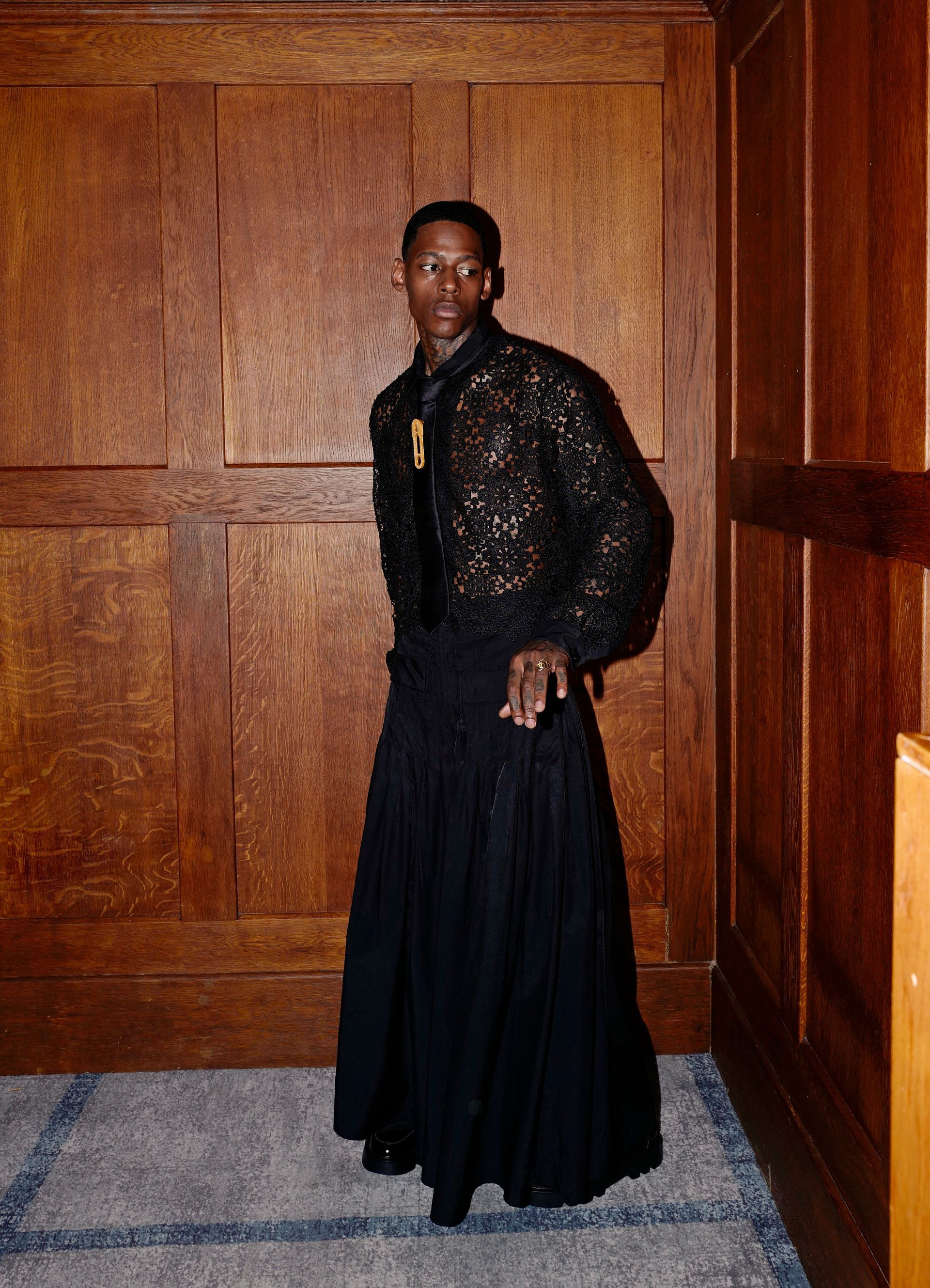 The Aviary lace shirt is made from 100% deadstock viscose lace and 100% cotton, utilising a technique that has its roots in Vietnam. With its intricate design, this piece is not only beautiful but also one-of-a-kind. Enhanced with exquisite 3D-printed silk filament buttons, this shirt serves as the perfect gender-fluid garment that genuinely makes a bold impression. Available with black or gold buttons.