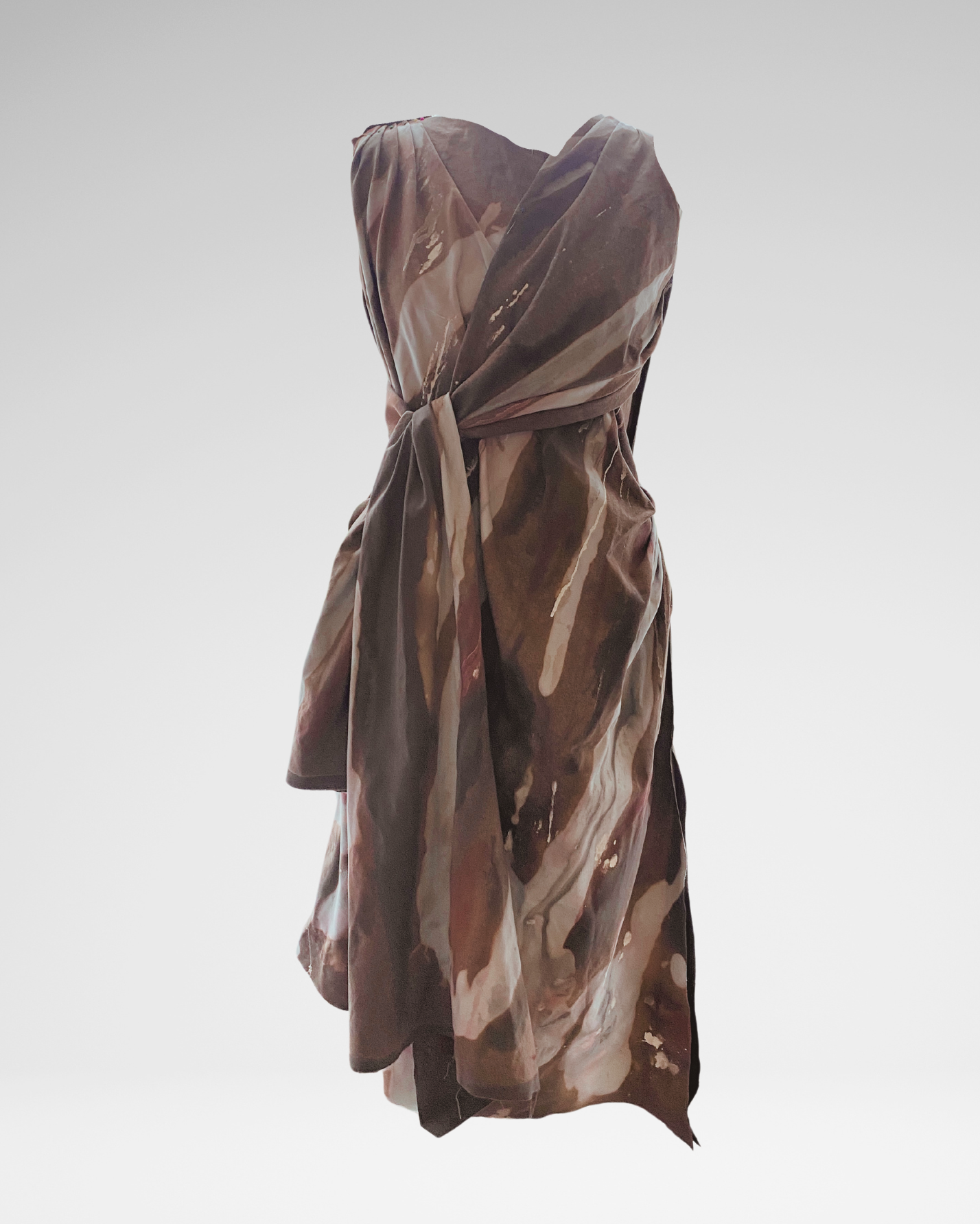 Introducing our stunning hand-inked and bleached asymmetric dress, a true statement piece that effortlessly combines artistry and style. This unique garment features intricate tie details that add a touch of whimsy and elegance, allowing you to express your individuality in every setting. The asymmetric cut creates a dynamic silhouette that flatters various body types, while the soft fabric drapes beautifully for comfortable all-day wear. Perfect for both casual outings and special occasions, this dress is a versatile addition to any wardrobe. Stand out from the crowd with a piece that showcases your bold fashion sense and appreciation for handcrafted details. Elevate your look with this one-of-a-kind dress that is sure to turn heads!