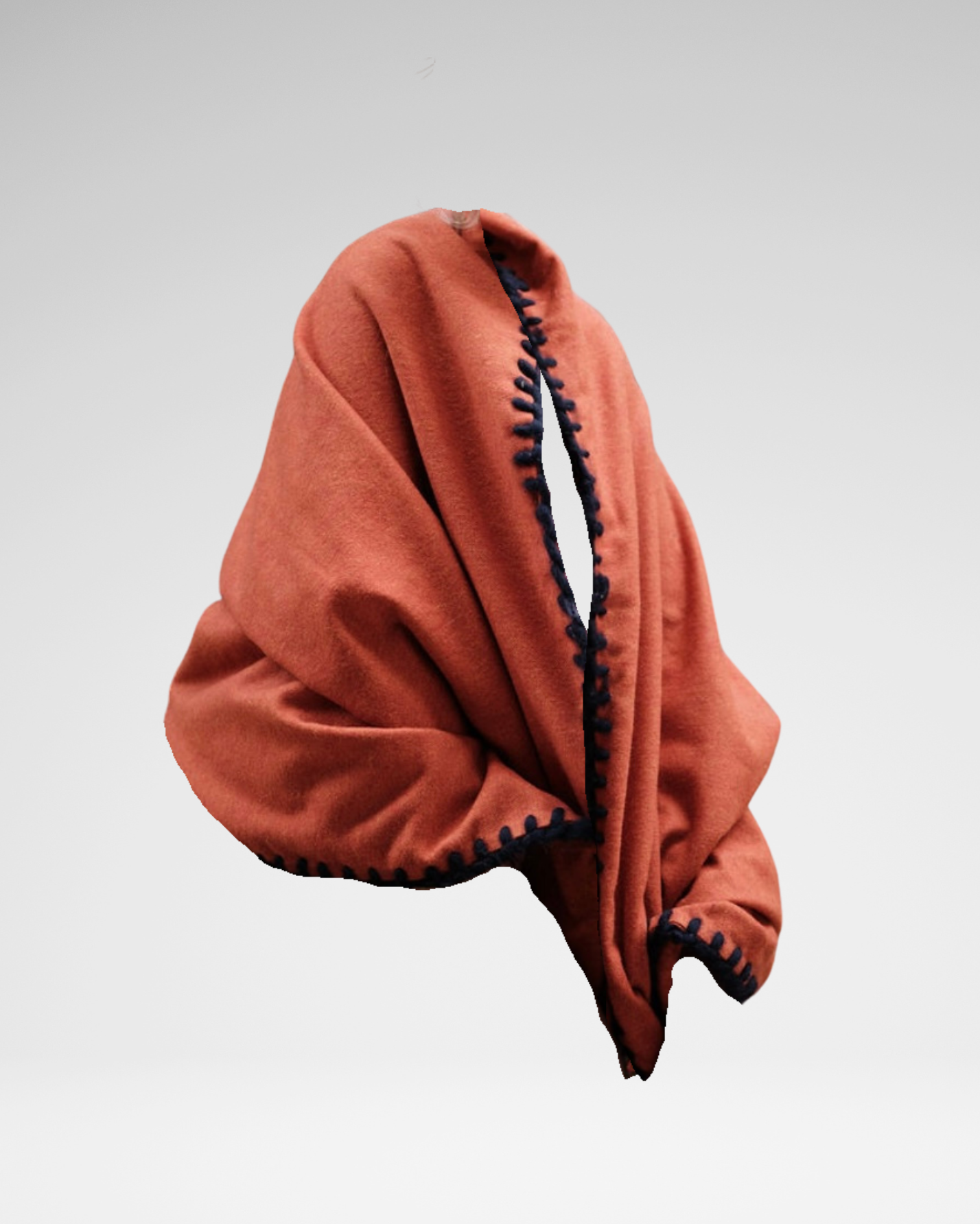 Wrap yourself in warmth and style with our exquisite burnt orange scarf, crafted from 100% premium wool. This luxurious accessory features stunning hand-felt navy wool blanket stitch details that add a unique touch of craftsmanship to its design. Perfect for chilly days, this versatile scarf can be worn in multiple ways, allowing you to express your personal style effortlessly. Whether draped around your neck or wrapped snugly for extra warmth, this scarf is sure to become your go-to accessory for any occasion. Embrace the cozy elegance of this beautiful piece and elevate your cold-weather wardrobe today.