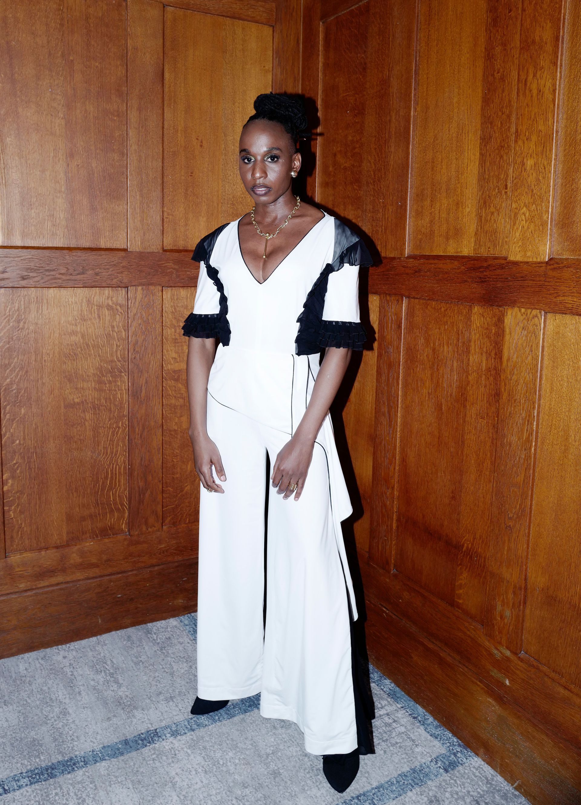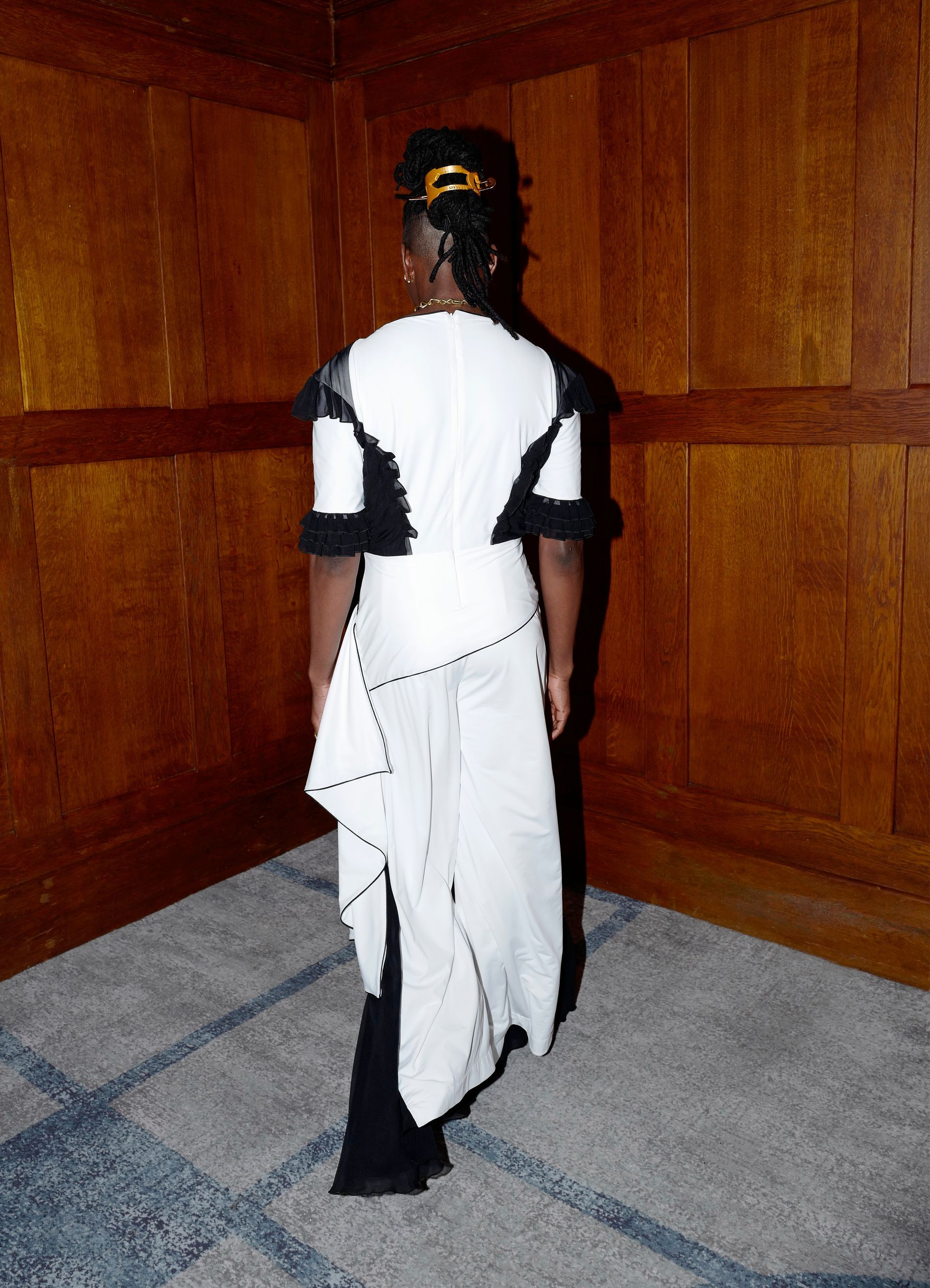 The Lucky jumpsuit is crafted from 100% deadstock cotton jersey and 100% silk chiffon, featuring structural piping details that beautifully juxtapose the airy decorative belt and wide-leg trousers. With stunning frilly cuff accents and a center back closure, it’s the ideal outfit for anyone who wants to transition effortlessly from day to night.