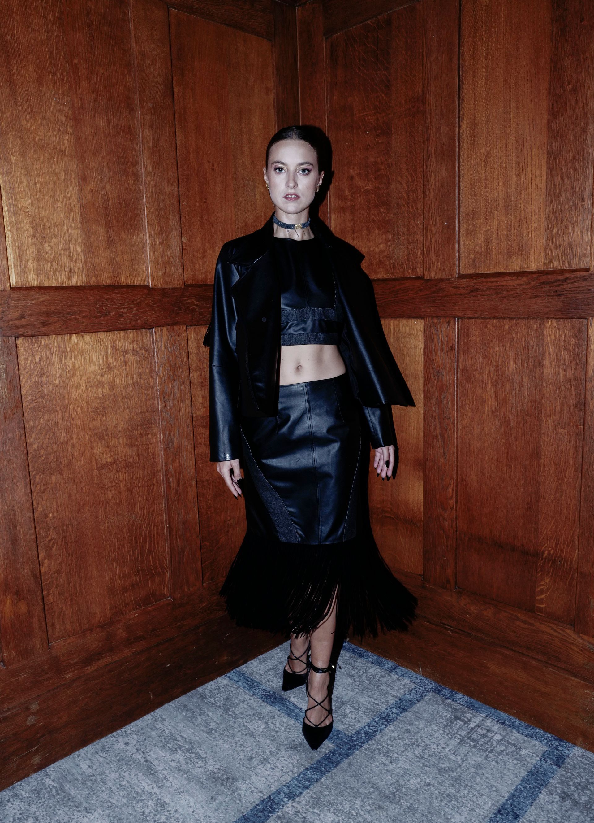 Elevate your style with our Wren skirt, expertly crafted from 100% ethically sourced deadstock pleather, designed for lasting wear. It boasts a luxurious black deadstock nylon lining and chic 100% raw denim panel detailing, complemented by stunning long fringe accents. This versatile piece is perfect for dancing, making you feel like a million dollars as you twirl down the street. Pair it perfectly with the Wren top for an unforgettable look.